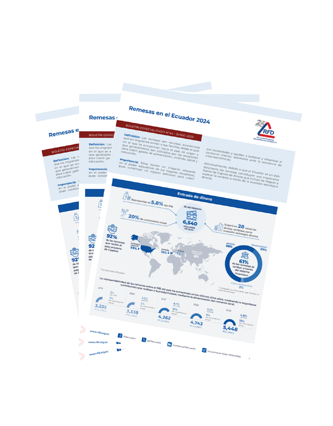 Muestra la situación de las remesas en Ecuador a 2024, analizando las fuentes de entrada de dinero, la participación de las remesas a nivel provincial y la salida de dinero.